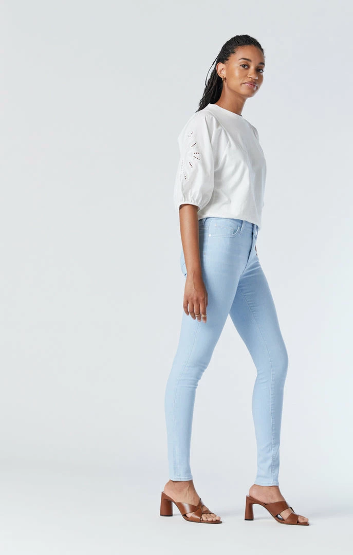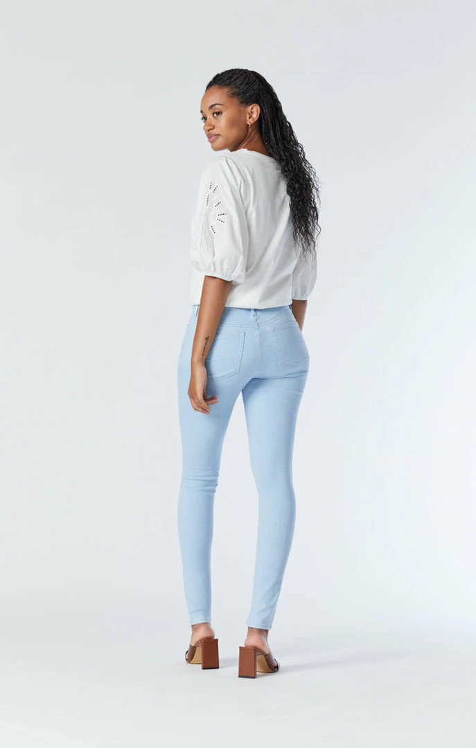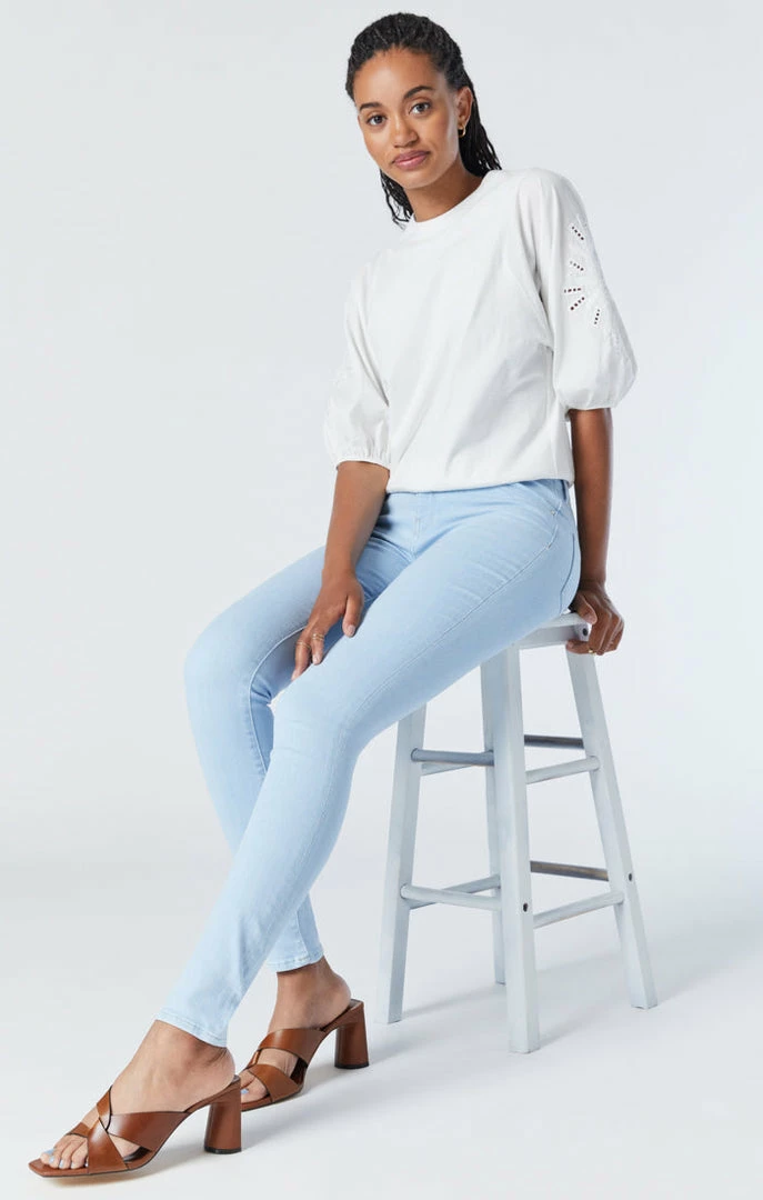 Light as a feather and finished in an icy blue wash that brightens up any closet, these Tencelβ’ and recycled cotton super skinnies are the refreshing, sustainable, and comfy jeans weβre all craving this season.