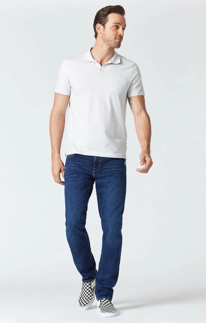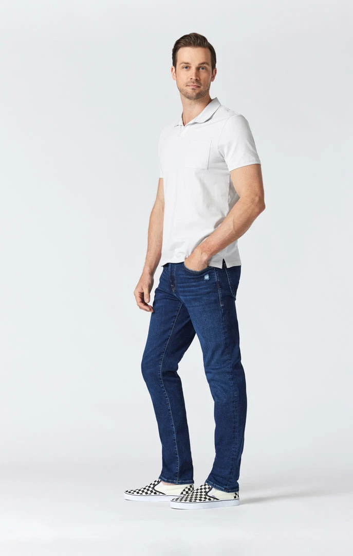 A sleek slim-leg jean in a deep, rich indigo wash, this sustainable closet staple keeps its stretch and shape wear after wear while looking just right for any occasion.