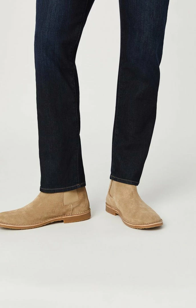 Introducing our newest fit Marcus. Features a fit that combines the best of two worlds: a roomy rise and a sleek slim leg. This pair was made with our popular Williamsburg fabrication that offers a touch of stretch with a clean indigo wash.