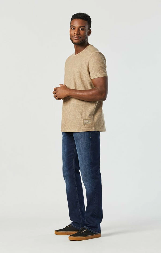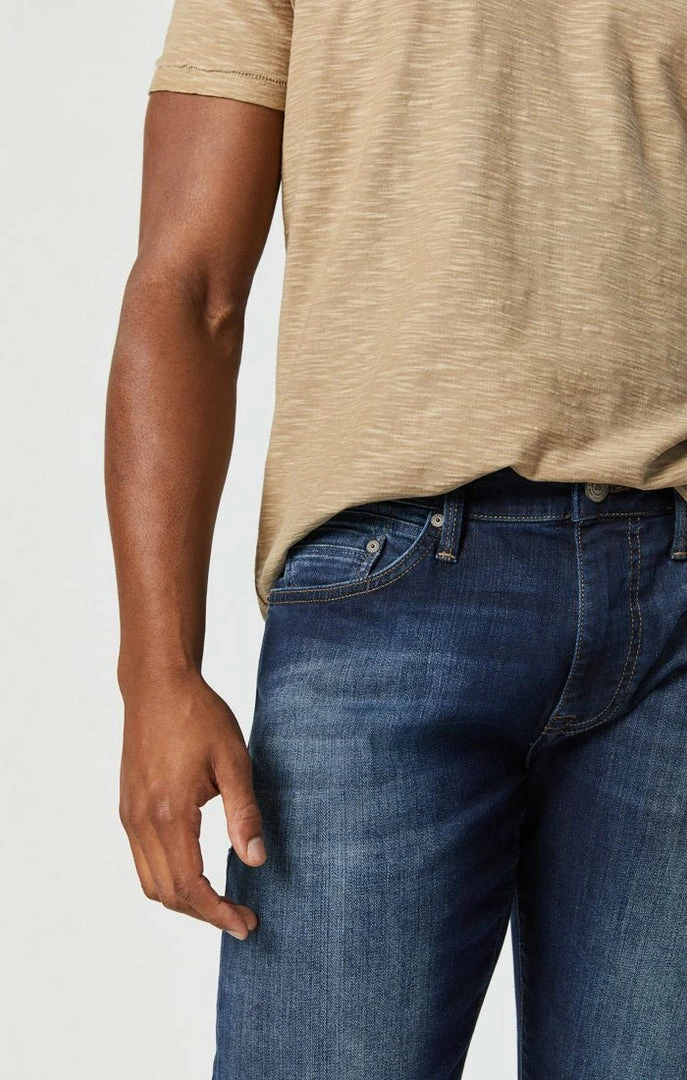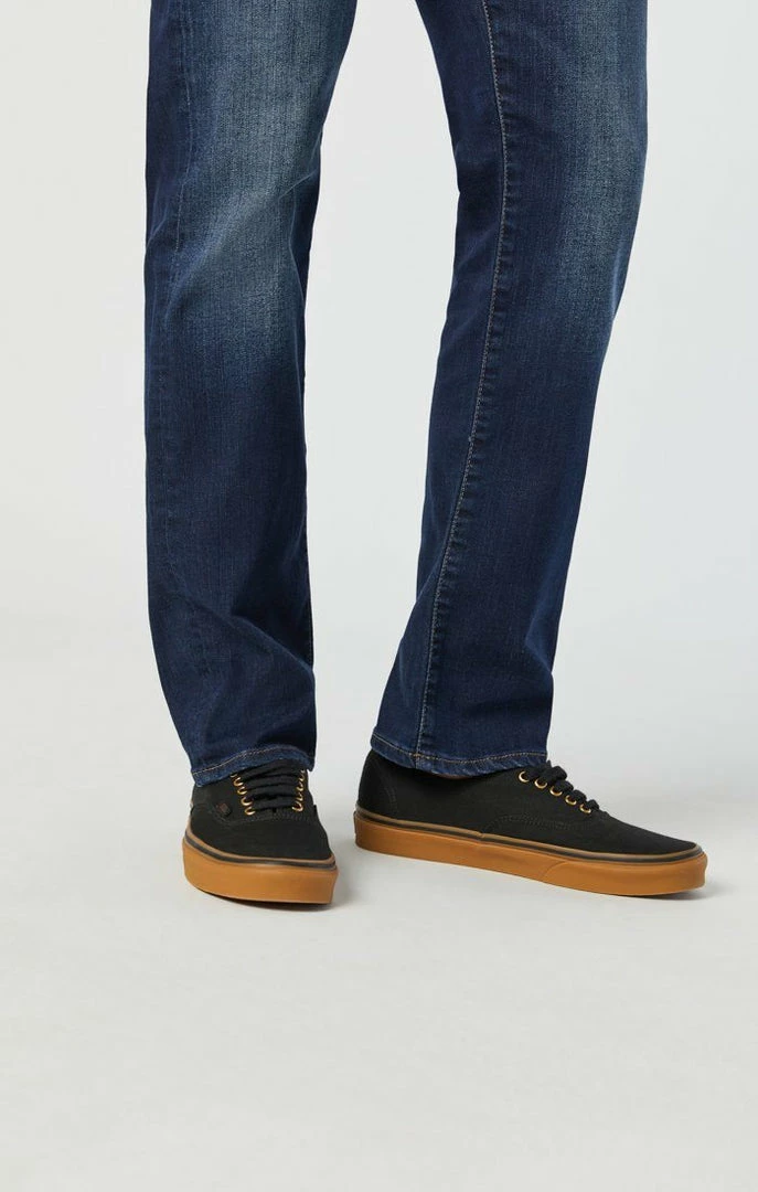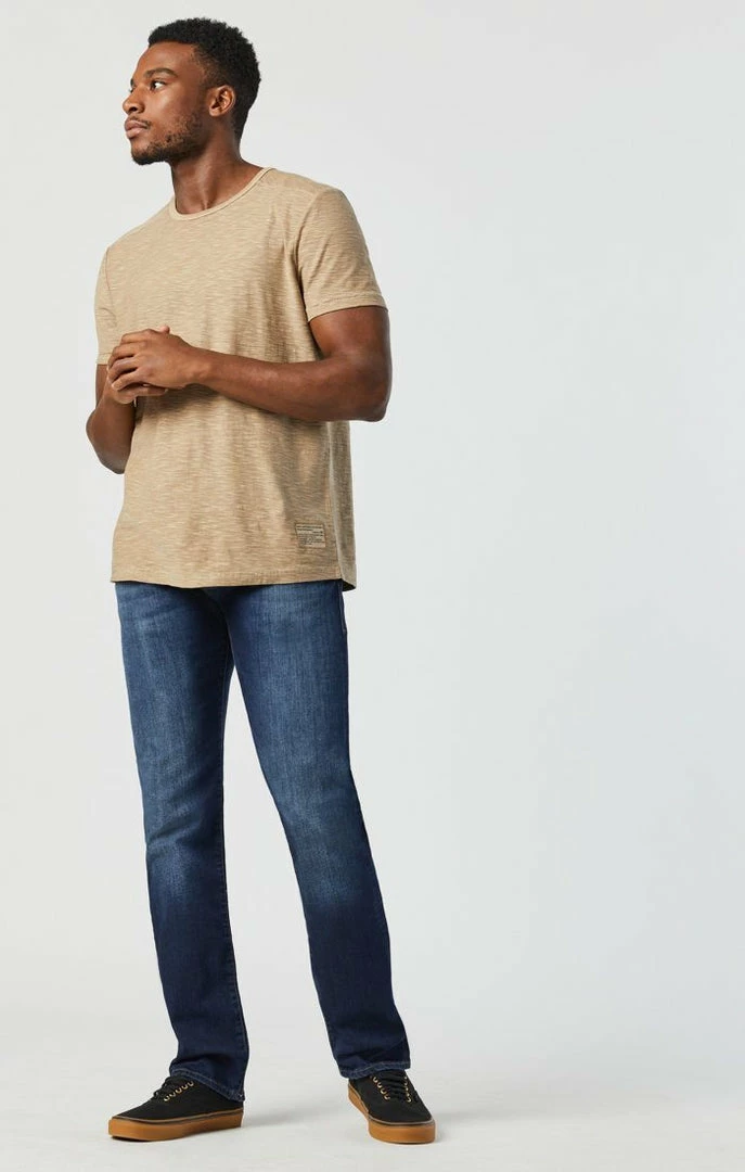Zach, our signature straight leg for men, features a tried and true fit with a comfortable rise and a leg with just enough room for a polished look. A universally flattering silhouette makes it a favorite among men of all sizes and builds and the classic brushed dark indigo wash gives a perfectly aged appearance.