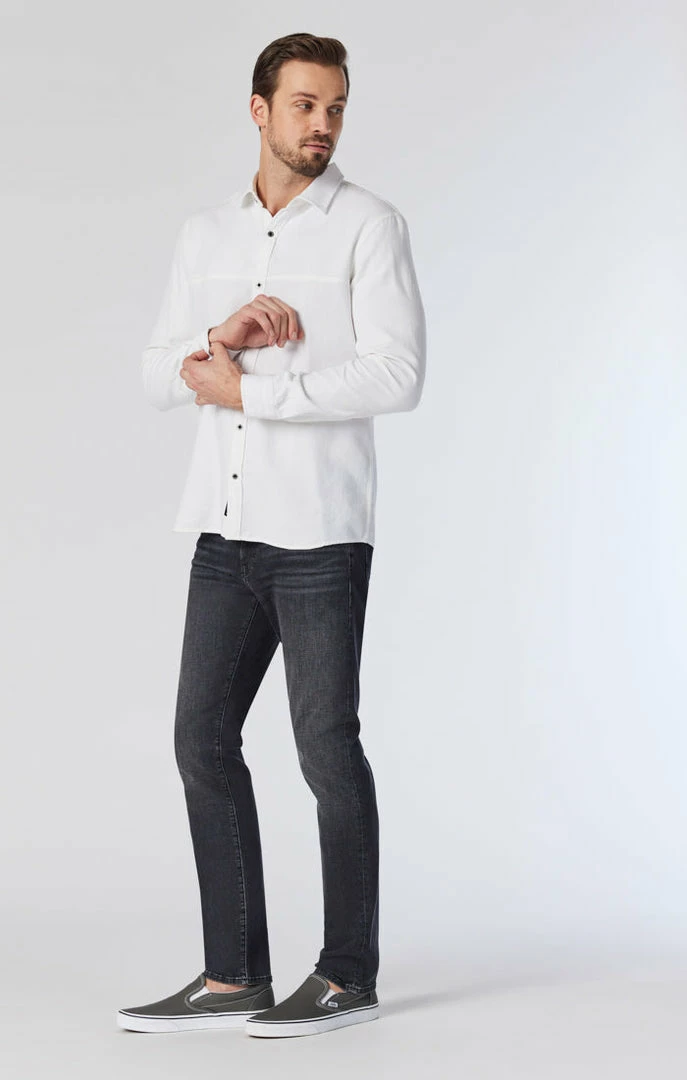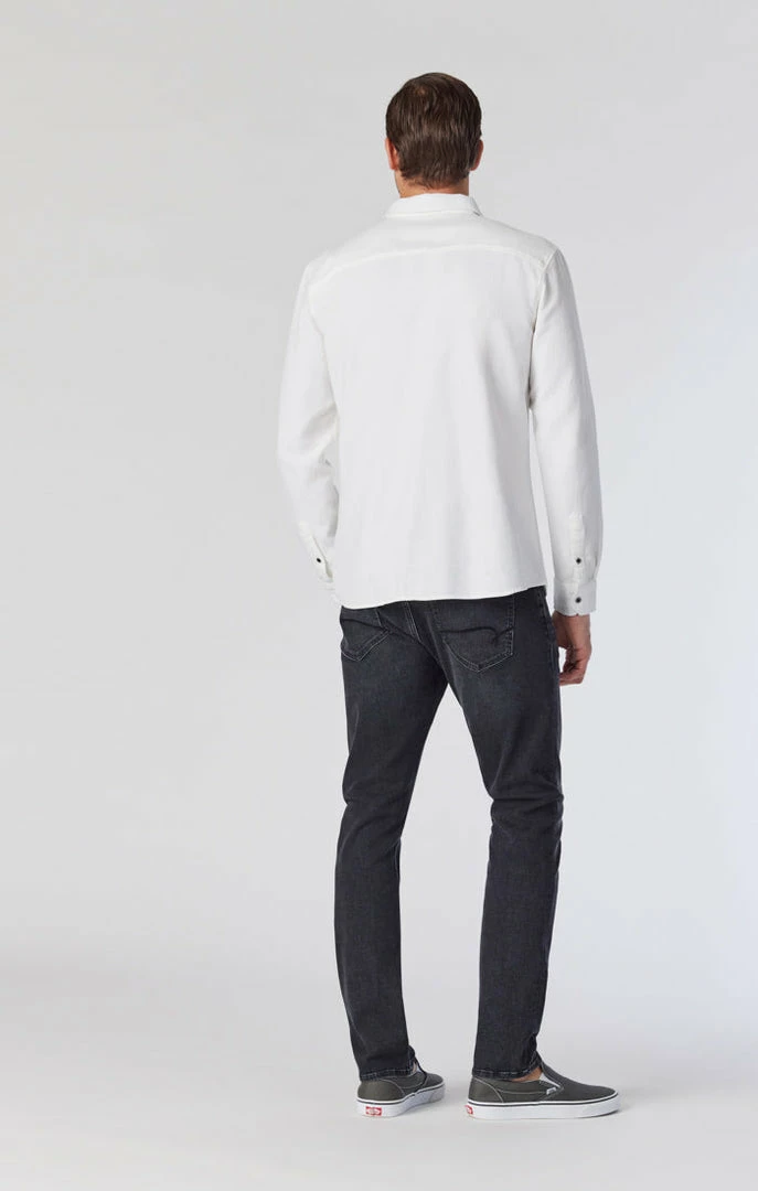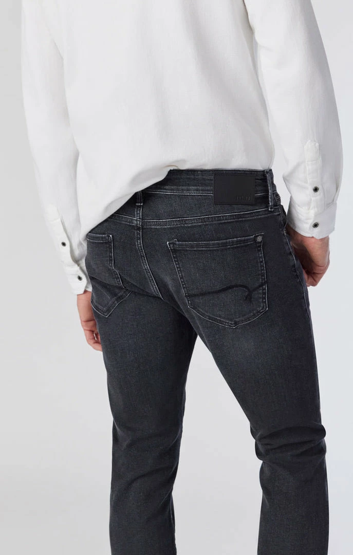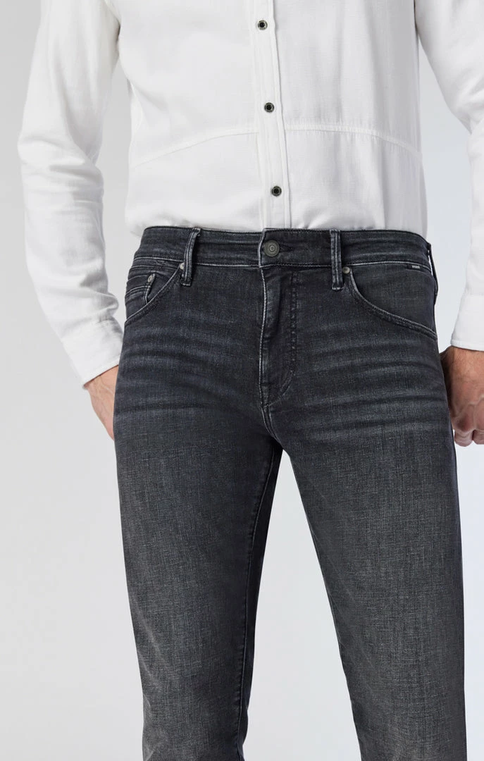 A sleek and edgy jean for dressing up or down, this slim-leg pair has a streamlined look and smoky dark wash that helps you stride confidently from day to night. Made with organic cotton and brushed for even more softness, this style has maximum stretch and movement while maintaining the look of classic, authentic denim.