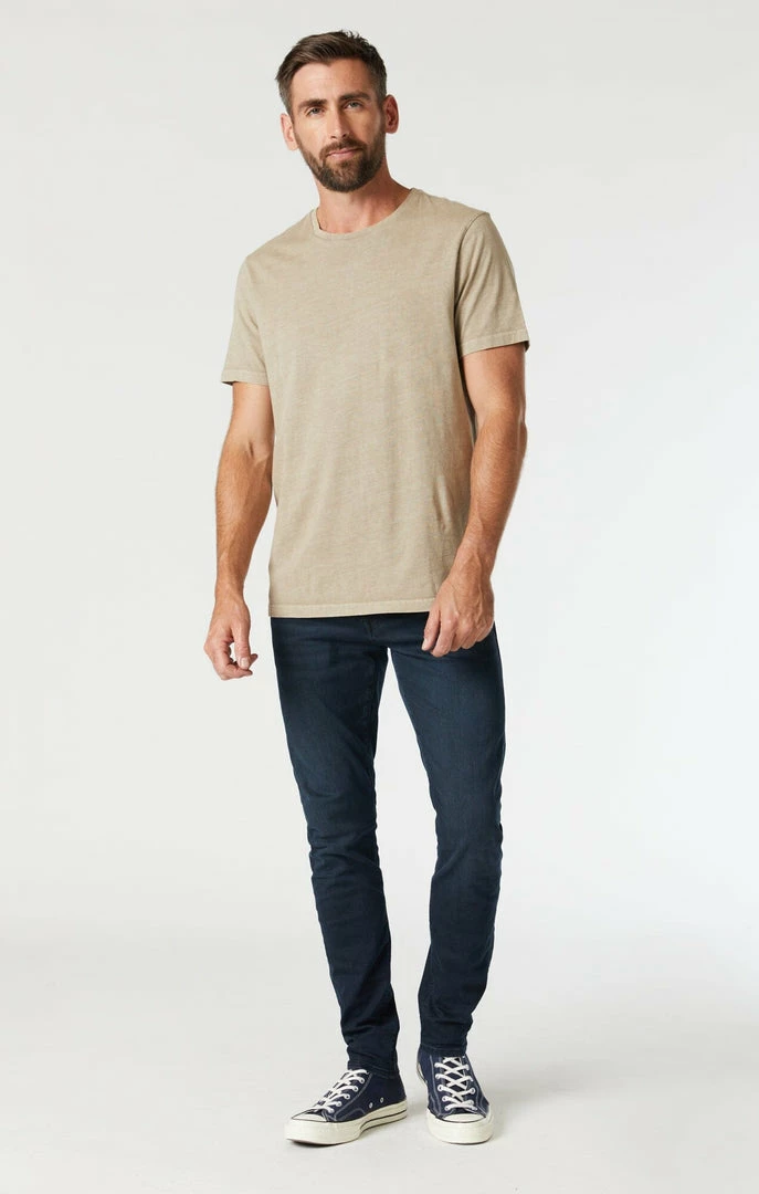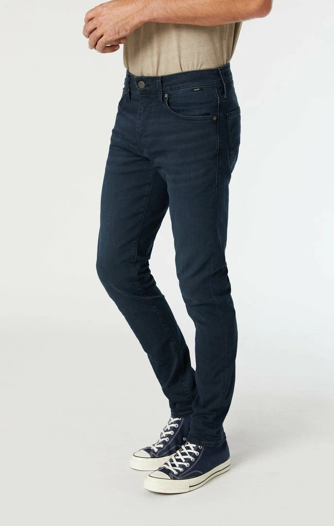 In our dark midnight wash, the James has a skinny leg for a tailored look.Β James has a comfortable regular rise that’s always easy to wear.Β