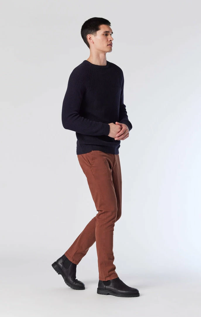 Bring some modern flair to the classic chino with this streamlined pair designed with flawless, velvety smooth twill and finished in a rich, brown hue.