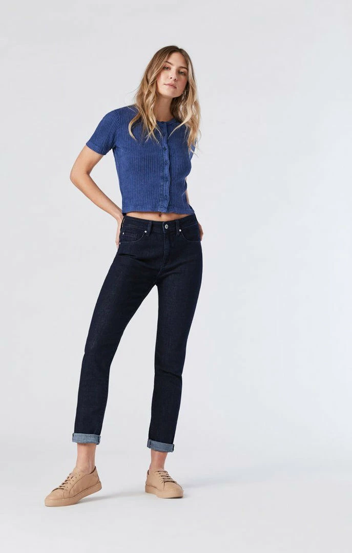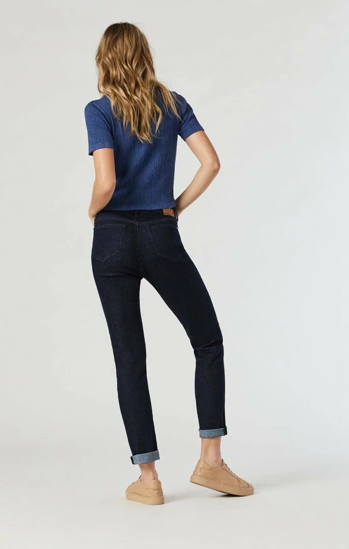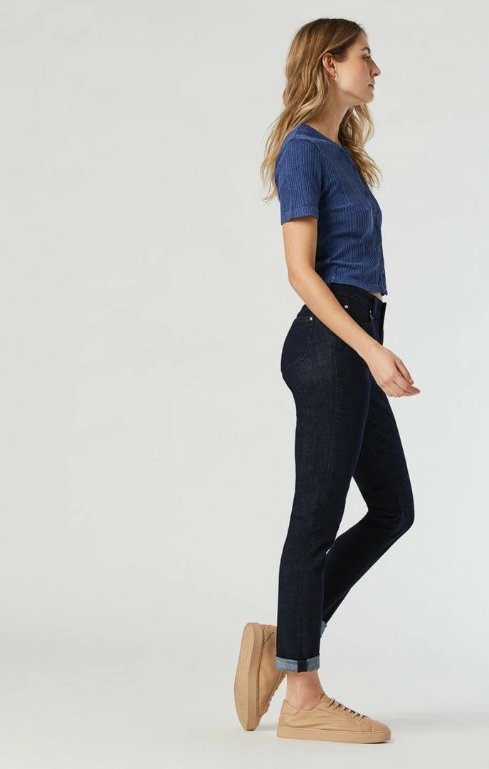 Classic boyfriend jeans get a style and comfort upgrade with a slimmer fit, solid and sleek dark wash, and sustainable Tencelβ’ and recycled cotton fabrication thatβs lightweight, stretchy, and soft.