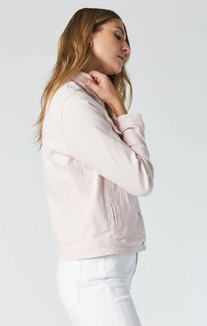 Bring on the sun in this playful pastel jacket that embraces the positive vibes of the season. A classic look and fit meets a modern denim fabrication with added stretch for a confident and comfortable style to throw over any warm-weather look.
