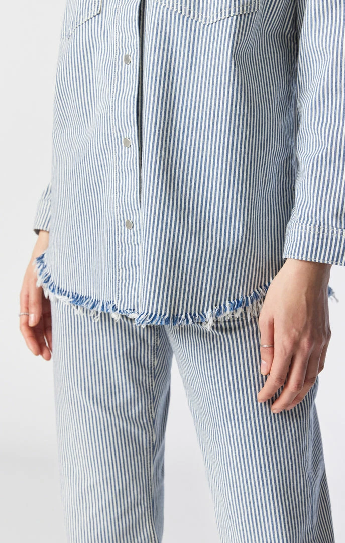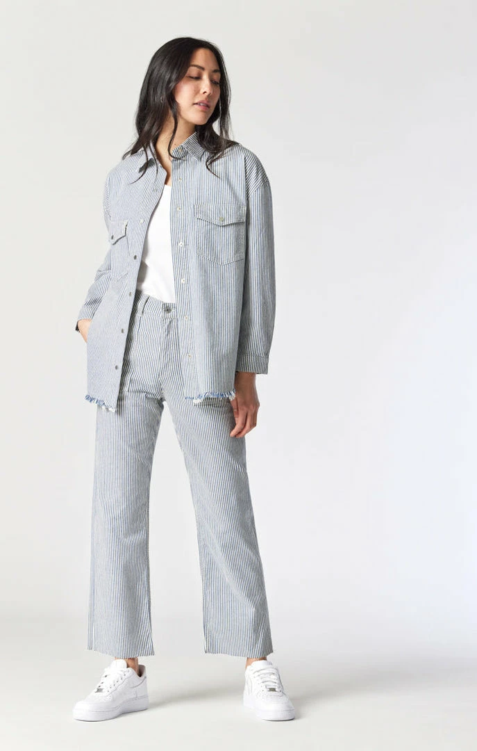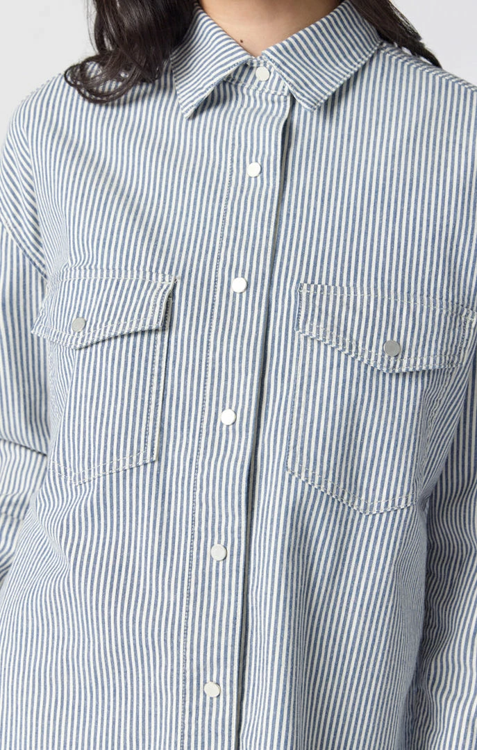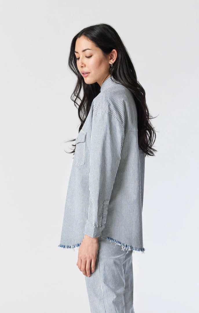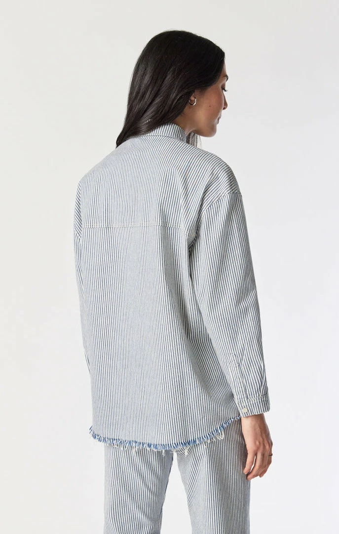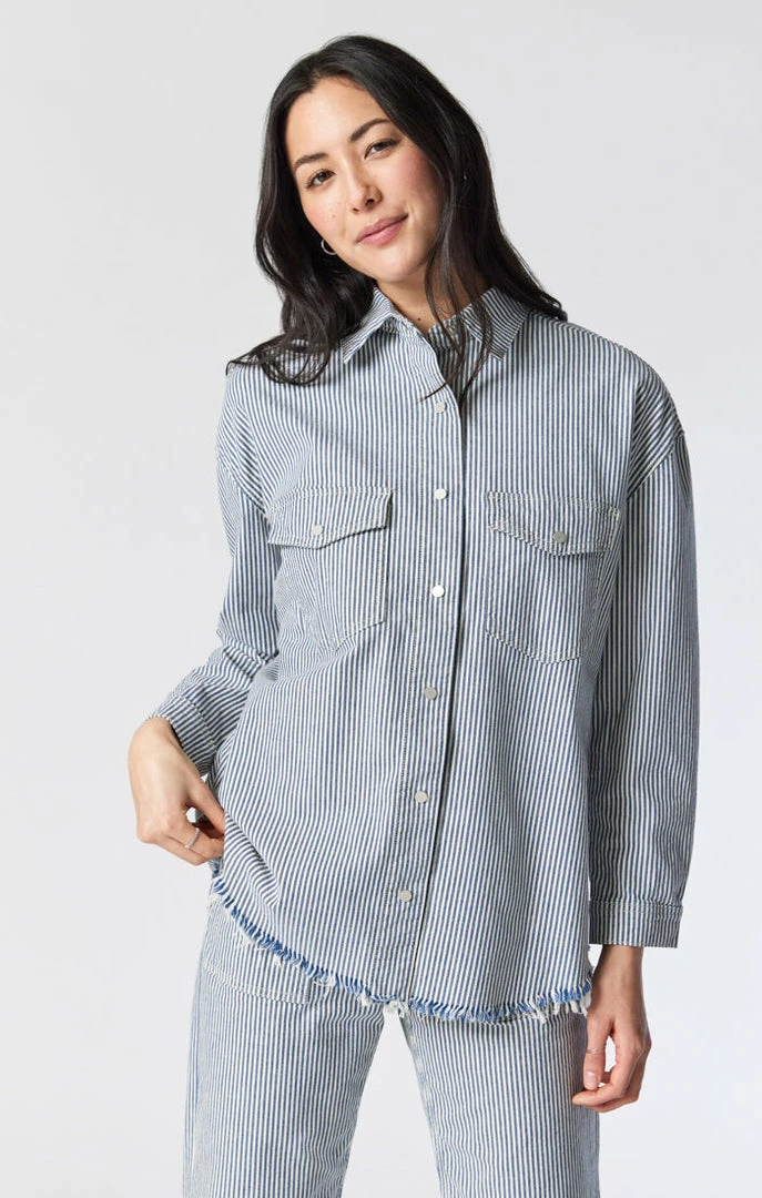 This unique, oversized denim shirt adds an eye-catching element with a striped pattern made from premium denim thatβs buttery soft with just the right amount of stretch. The roomy fit lets you move freely and easily but never looks slouchy.