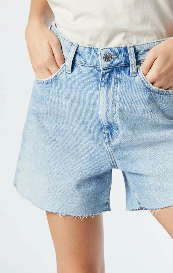 These truly classic jean shorts are a versatile closet staple you’ll want to wear again and again thanks to their relaxed fit, on-trend raw hem, and flattering high rise that’s easy to wear from day to night.