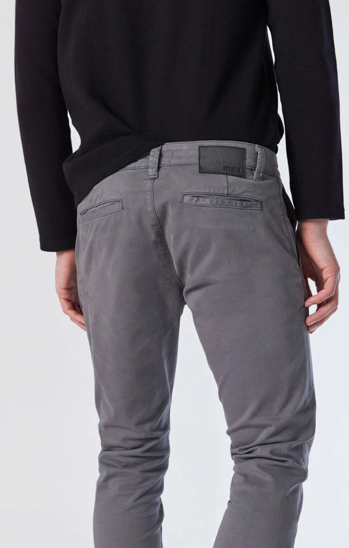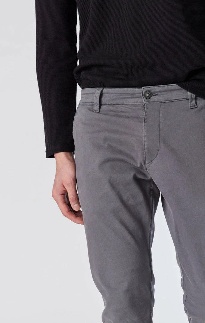 These sophisticated grey pants in a streamlined fit have the timeless elegance of a trouser, but with more stretch, smoothness, and flexibility than any classic chino.