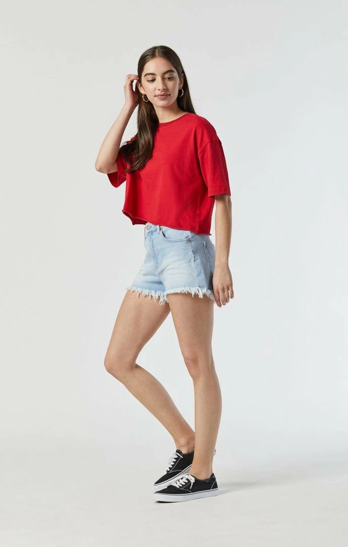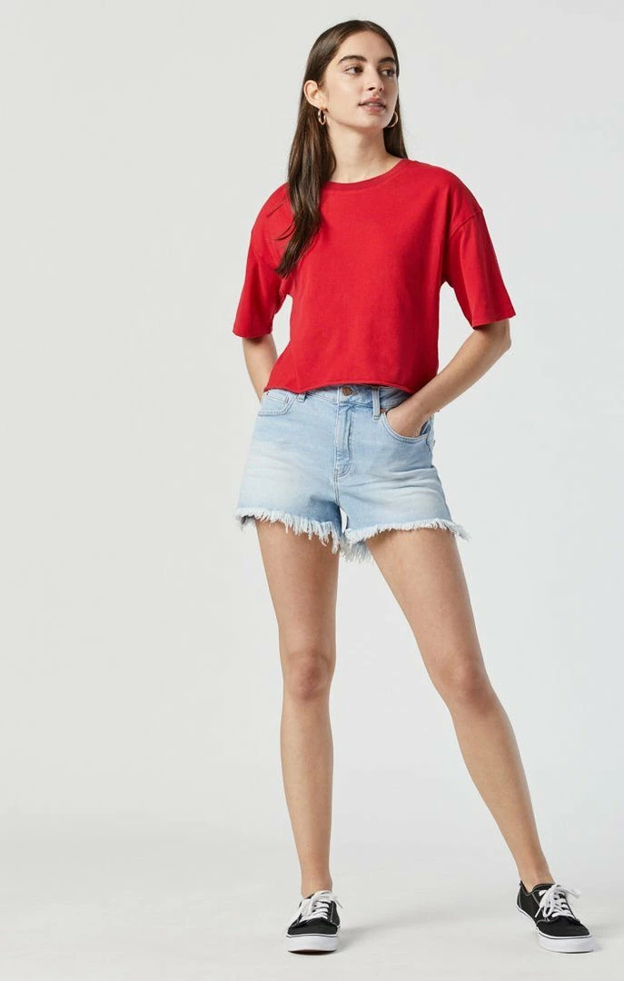These playful, on-trend jean shorts have a fringed hem and bleached wash in denim with incredible stretch and shape retention for a contemporary seasonal look that helps you feel both confident and comfortable.