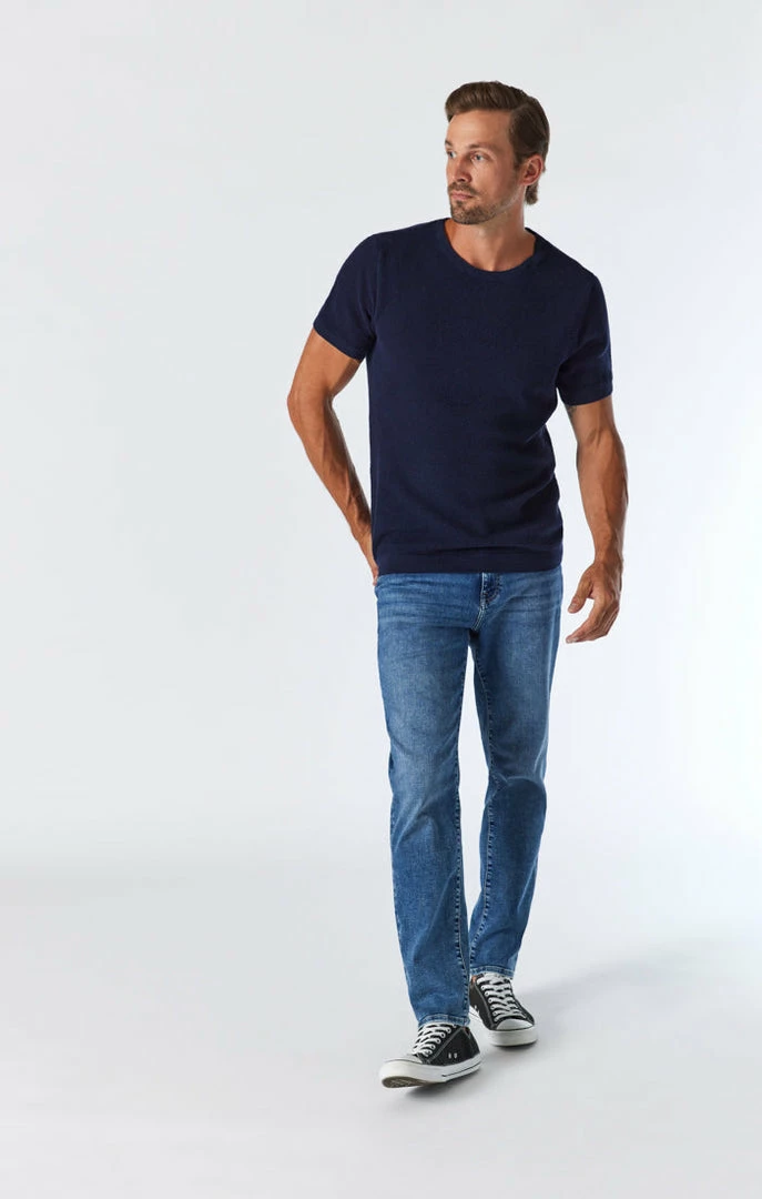 Maximum stretch, style, and sustainability for any body type. These ultra-versatile jeans in a classic indigo wash are made from breathable organic cotton and designed with more room at the thigh for those with athletic builds.