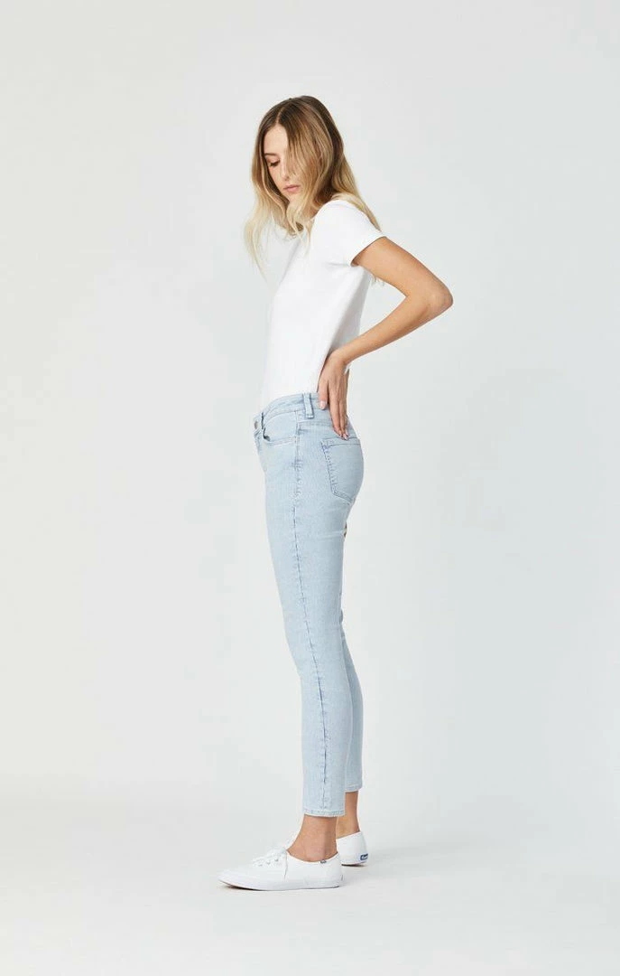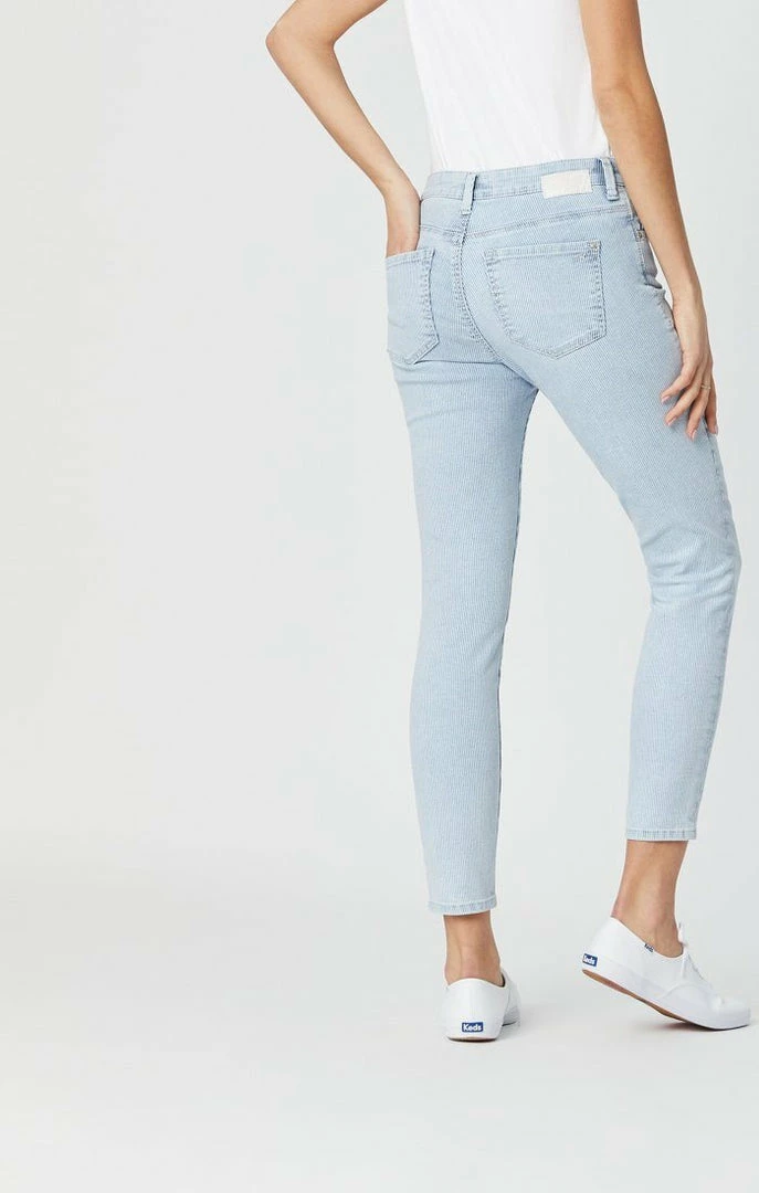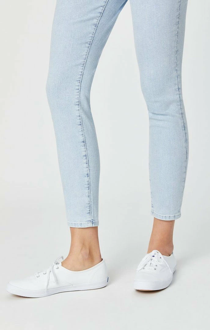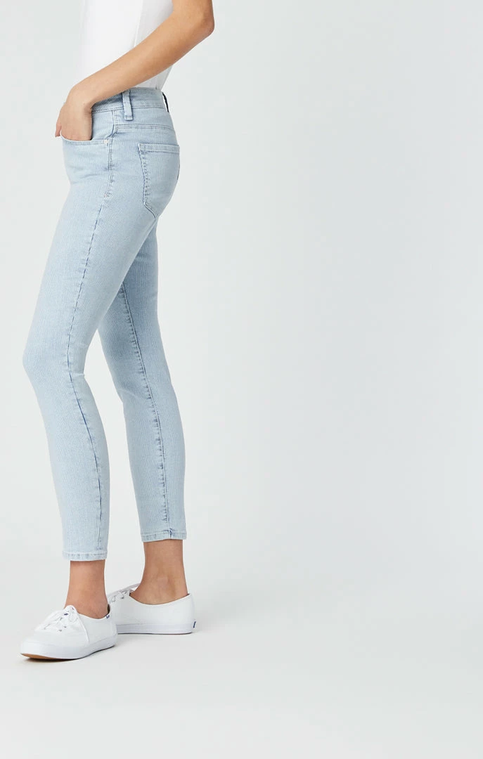 Our Tess super-skinnies are cut with a flattering high rise and fit slim through the hip, thigh, and leg. Designed in a vintage light wash with subtle stripes. The stretch fabric hugs the body with superior comfort and shape retention that lasts wear after wear.