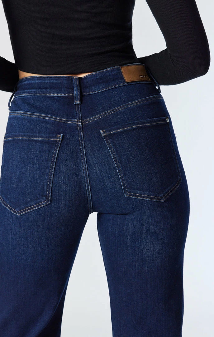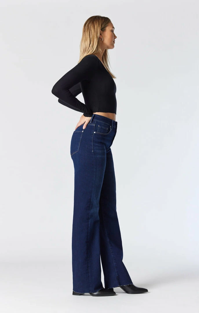 Take this striking style from the office to a night out without thinking twice. These high rise jeans have a roomy wide leg fit and are finished in a rich indigo wash that looks sleek and sophisticated no matter the occasion. Made with organic cotton that has maximum stretch and softness, this eco-friendly pair looks like timeless denim but feels more comfortable than any old favorite.