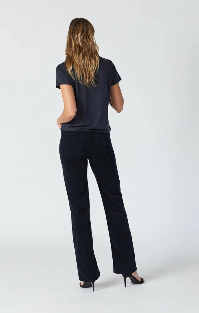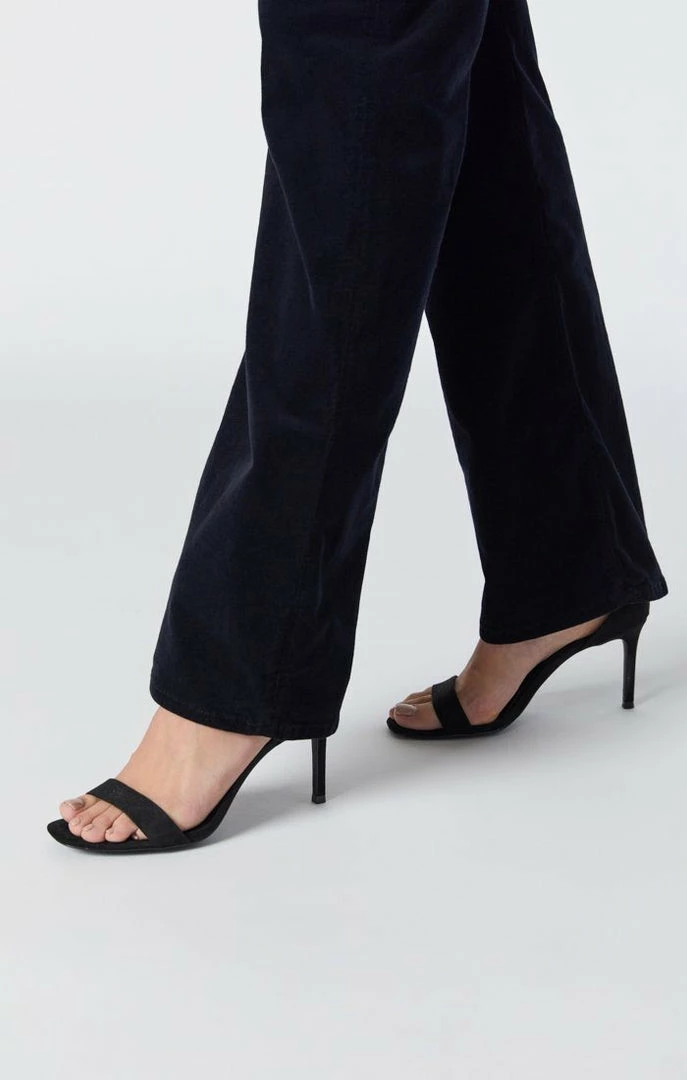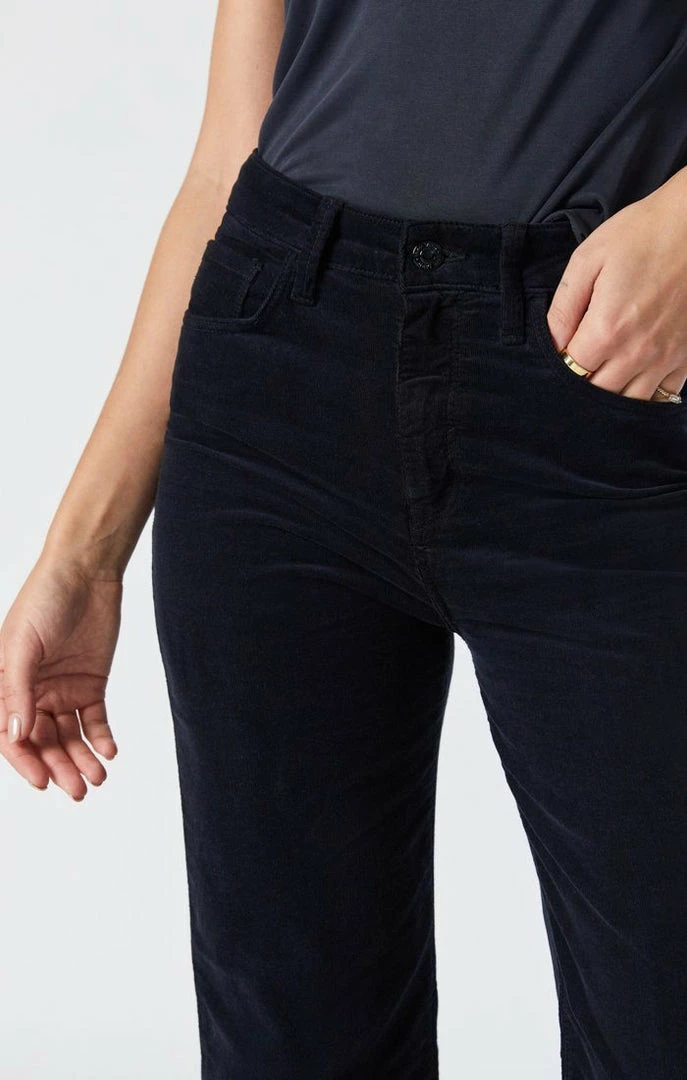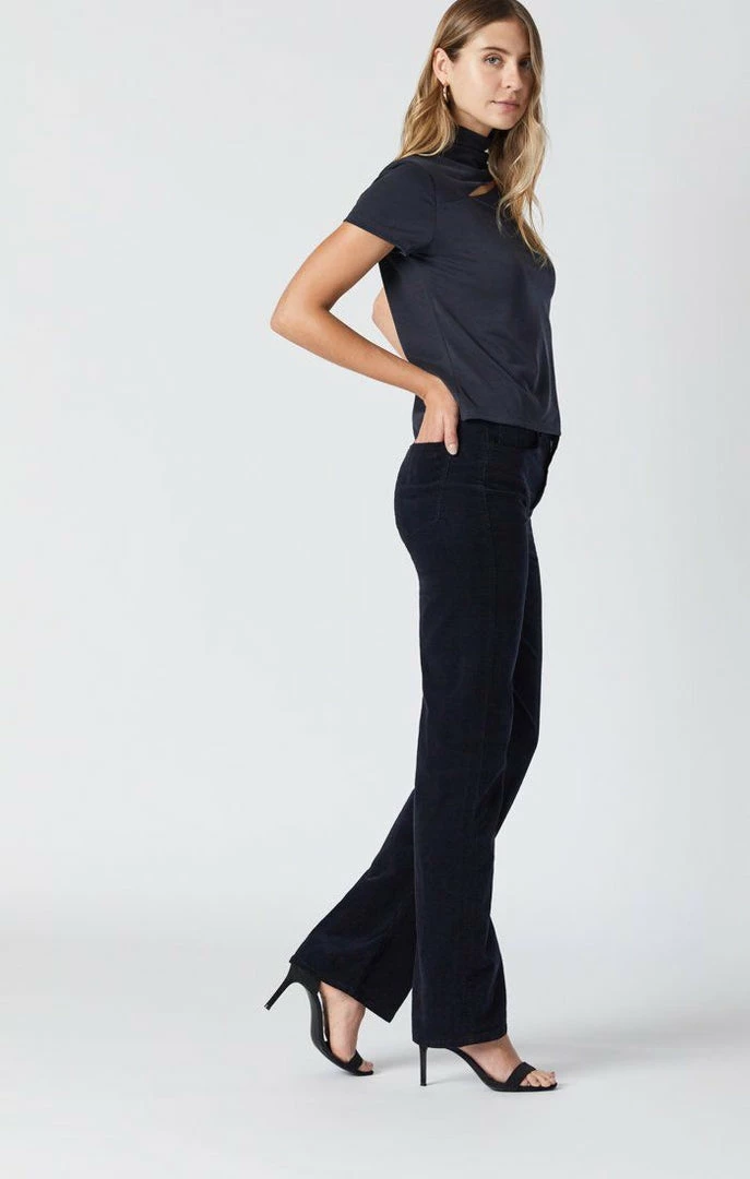 These luxuriously soft and stretchy black cords fit slim through the hip and thigh then gradually flare below the knee for a wide-leg pant that feels roomy and relaxed while being flattering from every angle.