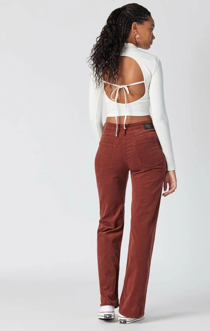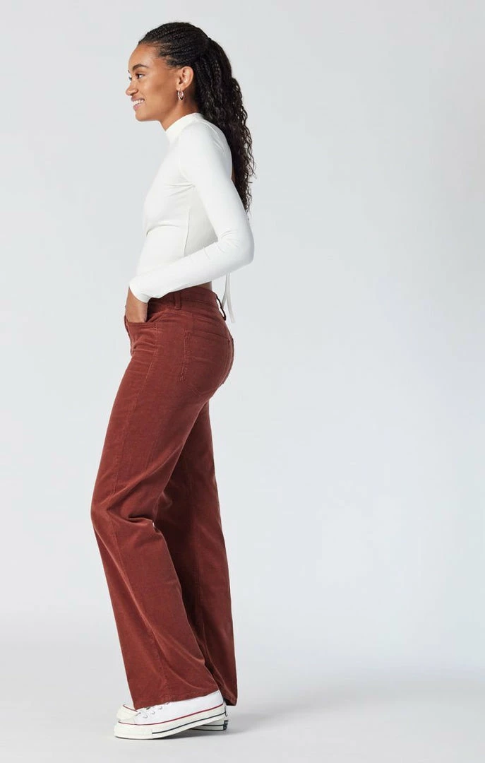 A chic, wide leg pant with just the right amount of flare, these luxuriously soft cords are finished in a warm, seasonal hue that gives some oomph to their timeless and sophisticated appearance.