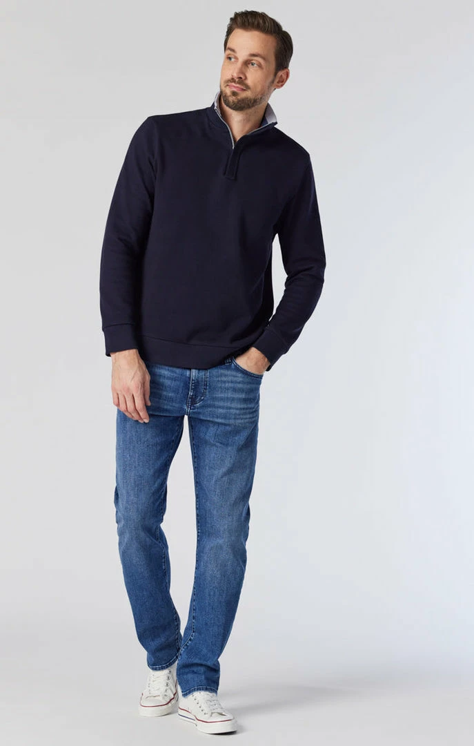 The everyday jean gets a style upgrade in vintage-inspired denim with added stretch. Move easily while looking sleek in this straight-leg pair that combines the best of old- and new-school details.